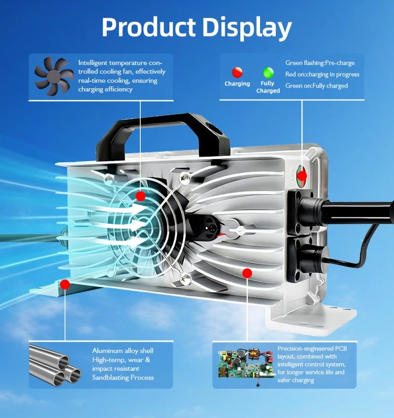 Suitable for electric vehicles, forklifts, golf carts, and marine systems, this STARWELL onboard charger combines versatility, speed, and safety—your trusted power solution for on-the-move battery needs.