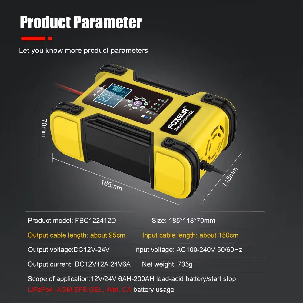 Unlike other chargers on the market, the 12V 24V 12A 7-segment Intelligent Lead-acid Battery Charger offers extensive safety features to protect both your battery and the charger itself.