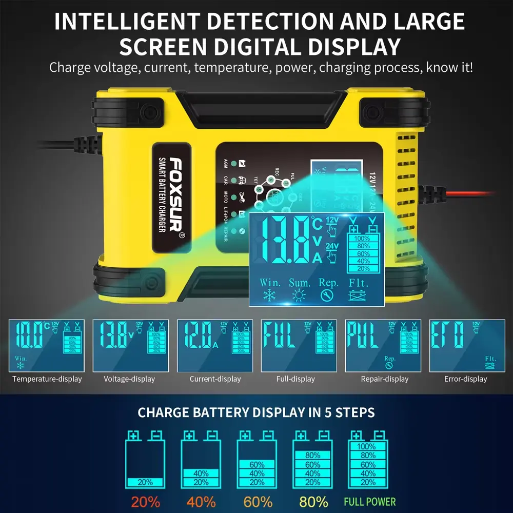 Fully Automatic Operation: Once connected, the charger manages the entire process — no manual settings needed (except for special modes if available).