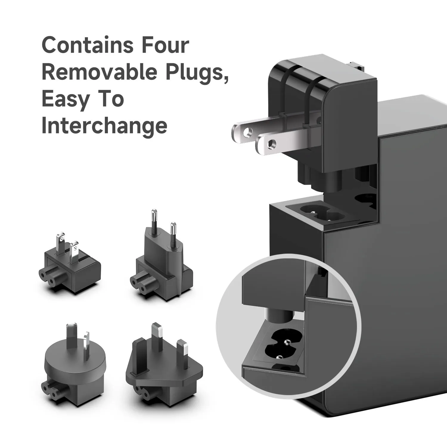 Multi-standard plugs: STARWELL power adapter is equipped with 4 types of snap-in plugs (US, EU, UK, and AU), no need for additional converters for cross-border travel.