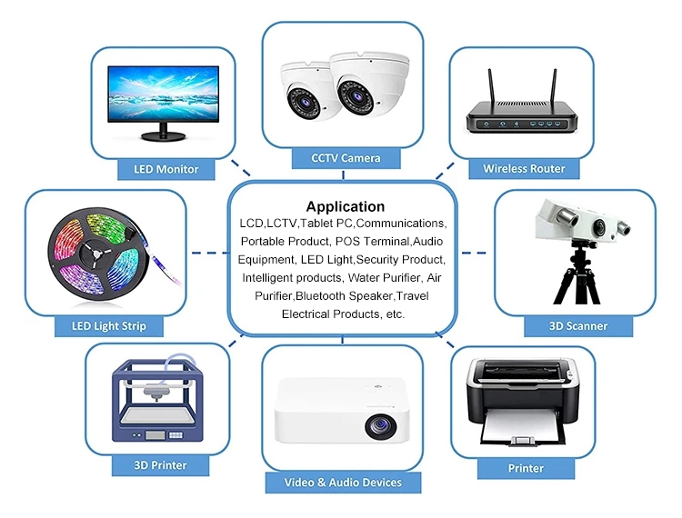 Strong Device Compatibility - 12V 5A standard interchangeable power adapter, 5.5×2.1mm international standard DC interface, compatible with over 90% of routers, surveillance devices, LED light strips and other equipment. This one device can be used for multiple purposes, solving the problem of excessive accumulation of unused adapters at home.