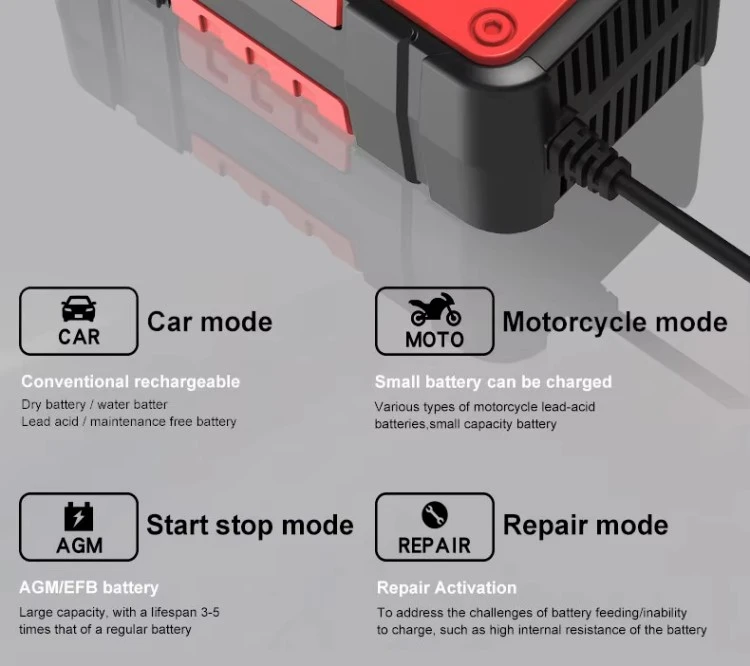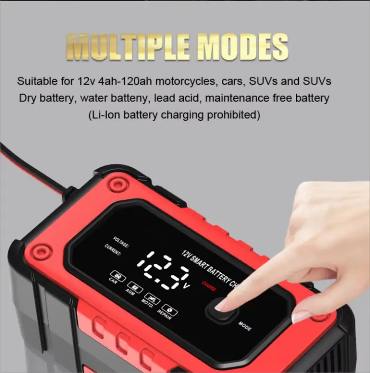 Repair Mode: Built-in pulse repair function helps recover sulfated batteries and extend battery life.