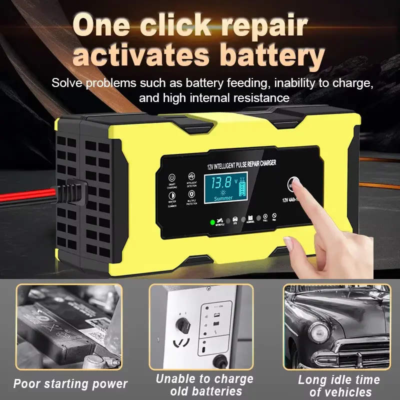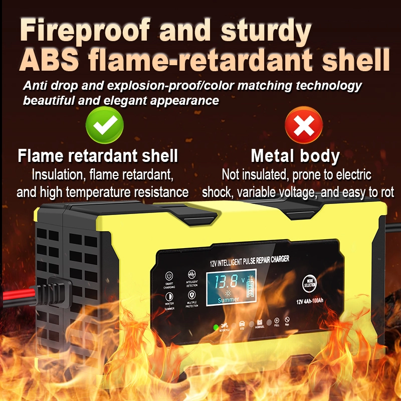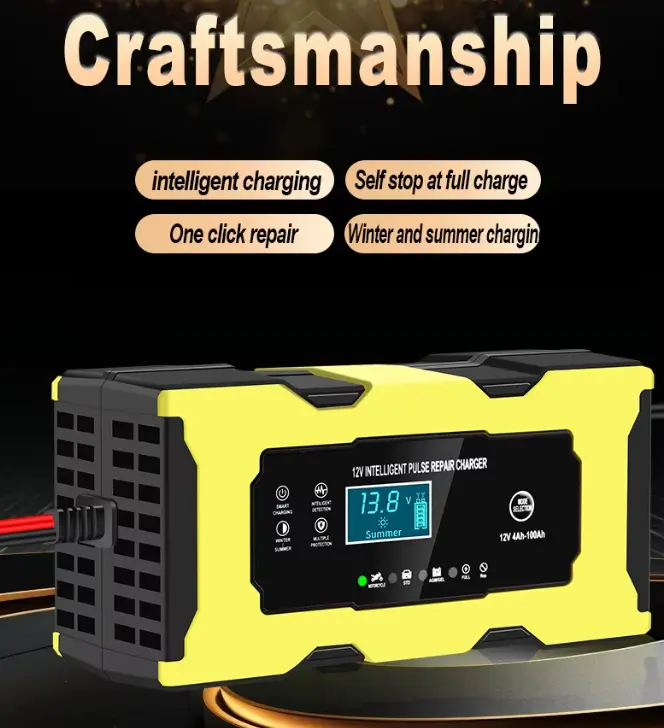 As a leading professional manufacturer in China, Starwell introduces a 12V 6A Full Intelligent Automatic Repair Motorcycle Battery Charger designed specifically for 12V lead-acid, AGM, Gel, and LiFePO4 batteries. Utilizing microprocessor-controlled, three-stage smart charging technology, this unit features a pulse repair function capable of effectively breaking down lead sulfate crystals to restore the capacity of aging batteries. Once fully charged, the device automatically switches to a low-voltage float-charge maintenance mode to prevent overcharging. The product undergoes 100% burn-in testing and complies with CE, RoHS, and FCC certifications, making it suitable for use with motorcycles, ATVs, snowmobiles, and other small 12V battery systems. Choose Starwell for a safe, intelligent, and fully automated battery charging and repair solution.