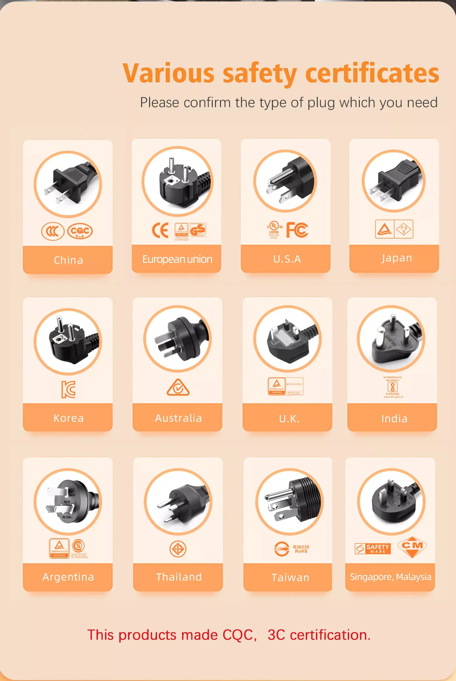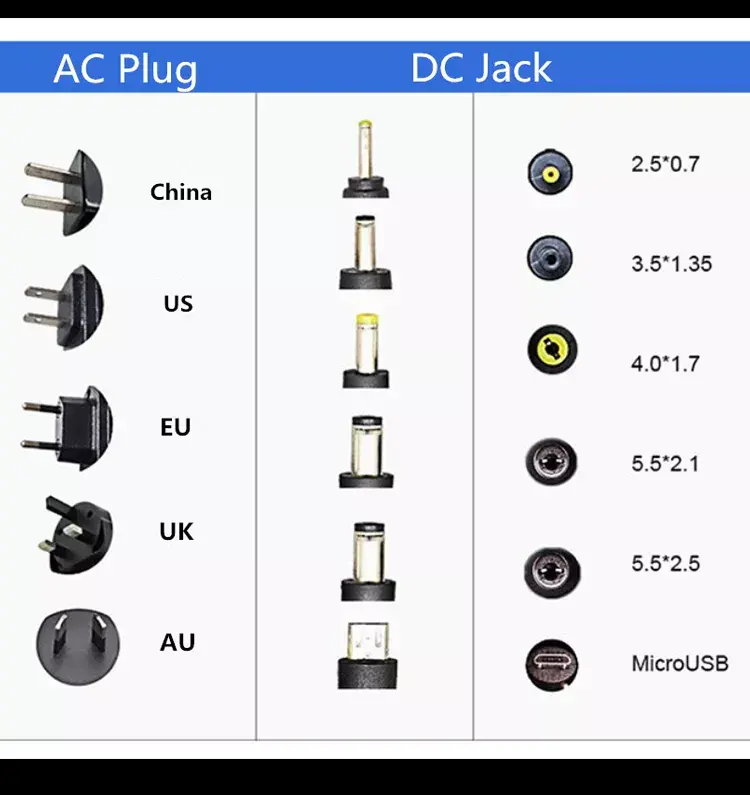 Connector Type: Standard DC barrel connector (common sizes include 5.5mm×2.1mm or 5.5mm×2.5mm, customizable based on device requirements).