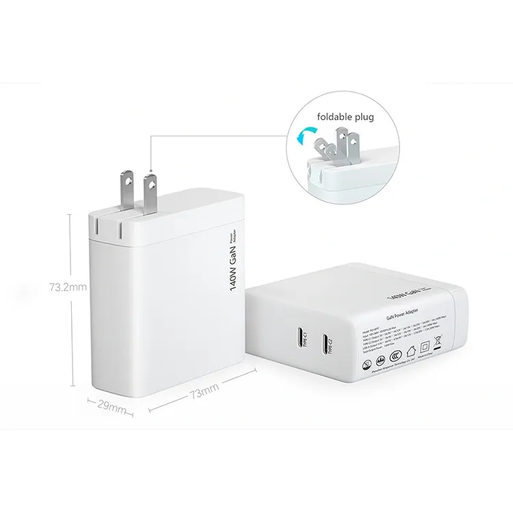GAN: With GaN chips, the size of 140W PD Charger is reduced by 50% compared to traditional chargers, making it easy to carry for business trips or office use, without taking up power socket space.