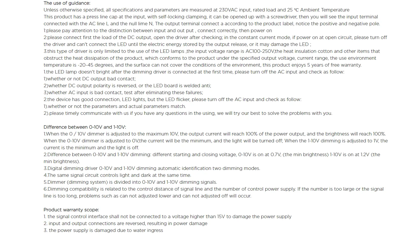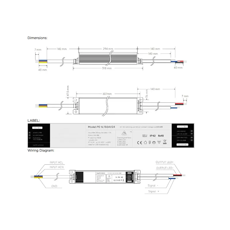 Equipped with a standard 0-10V dimming interface, it supports smooth brightness adjustment from 1% to 100%, compatible with most leading dimmers on the market. Boasting high energy efficiency up to 95% and a wide AC input range of 100-277V, it adapts effortlessly to global voltage standards, perfect for international projects.