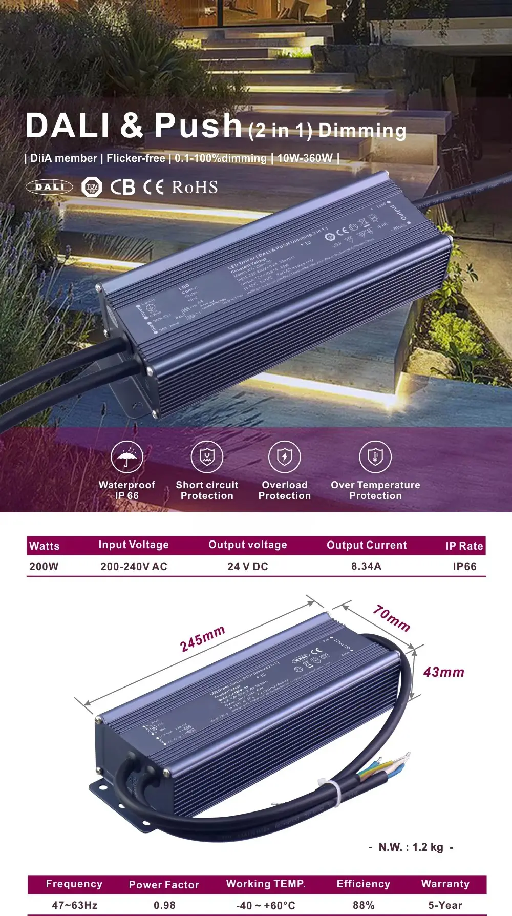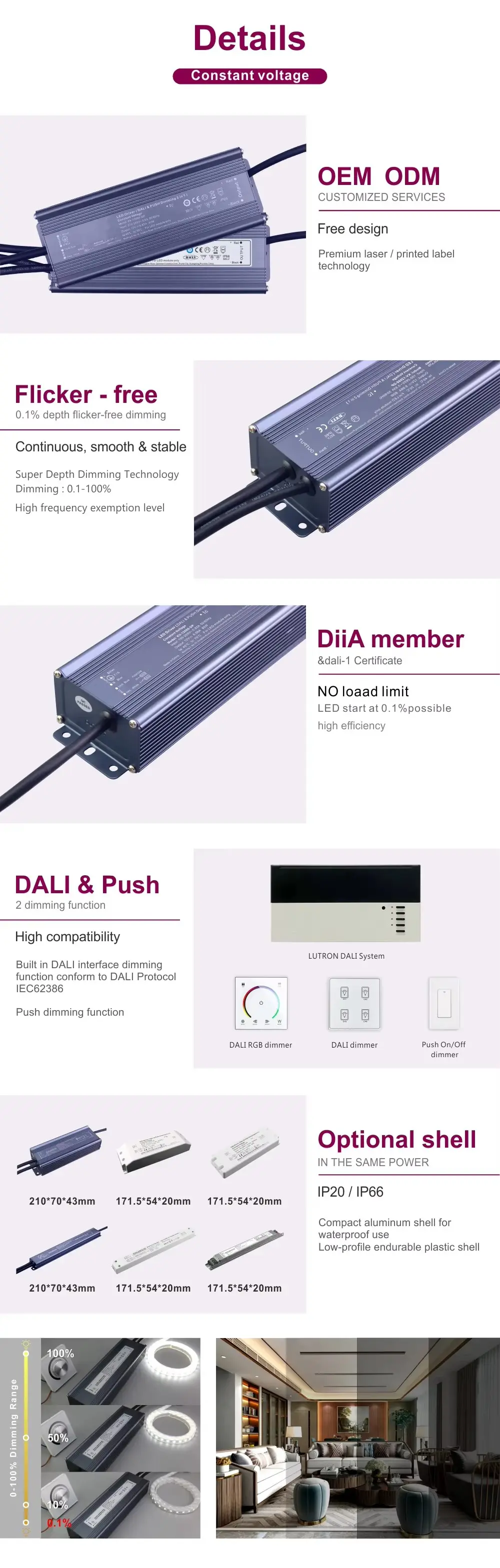 STARWELL high quality 12V/24V constant voltage LED driver integrates advanced DALI-2 protocol and user-friendly Push Dim functionality in a single, future-ready device. Engineered for architects, lighting designers, and installers who demand both technical excellence and practical flexibility, this driver simplifies complex projects while delivering exceptional performance.