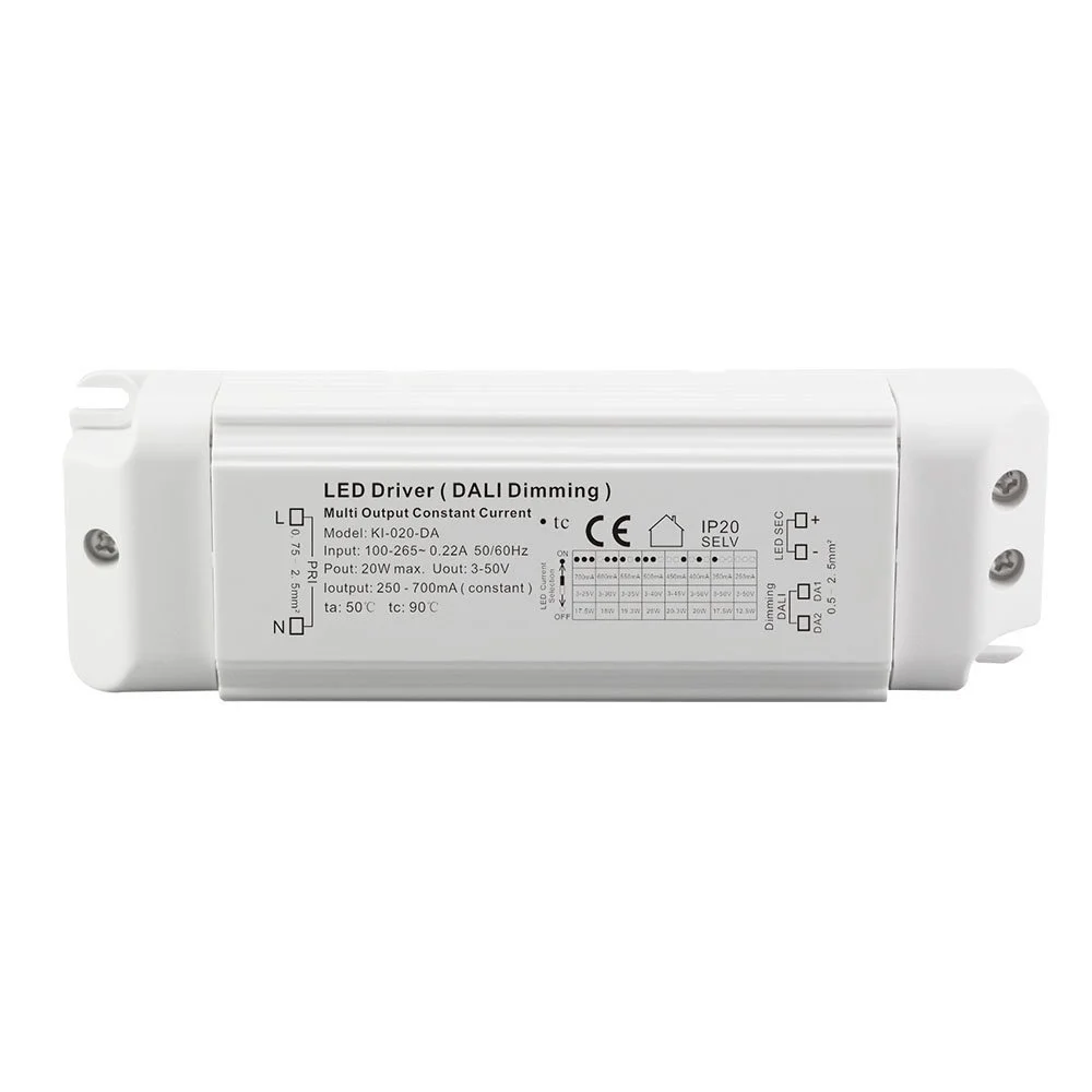 In conclusion, this is a 20W constant current DALI dimming LED driver with comprehensive functions and reliable performance. Whether you need to build a complex DALI intelligent lighting network or are looking for a stable and easy-to-use dimmable driver, this 20W DALI dimming constant current LED driver can be an outstanding choice for you, providing smart, efficient and long-lasting power to all kinds of LED lamps.