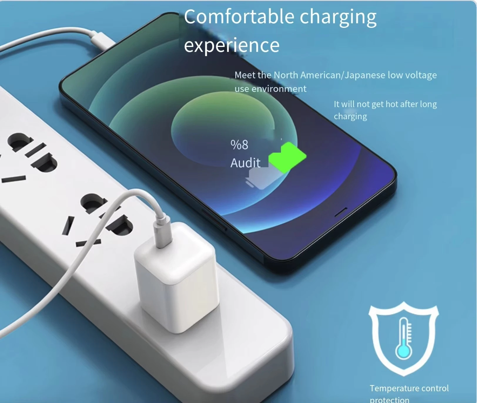 USB Charger with Full speed as the mobile phone or other USB equipment required,Compatible with Type-C and provides standard charging for non-Quick Charge devices |