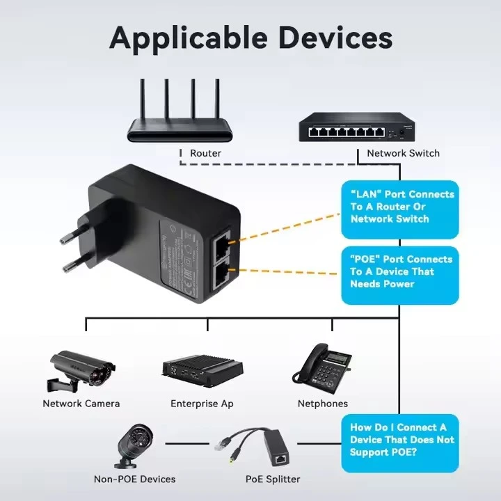 STARWELL stands as a renowned and professional 12V 24V 48V Universal POE Adapter manufacturer based in China. We have built our reputation on producing high-quality products at reasonable prices, serving clients worldwide with reliable networking solutions that combine innovation with practical design. Our PoE injectors are engineered to support a comprehensive range of transmission rates, including 10/100/1000M, 2.5G, 5G, and 10G. This exceptional flexibility allows for seamless integration with diverse Ethernet devices, from legacy equipment to high-bandwidth applications, ensuring both reliable power delivery and uninterrupted data transmission across your entire network infrastructure. STARWELL's PoE injectors strictly adhere to IEEE802.3.af/at/bt PoE++ standards, guaranteeing broad compatibility with virtually all PoE-enabled devices on the market. This compliance enables efficient power delivery while supporting advanced functionality such as remote device management and real-time power monitoring, giving network administrators greater control over their installations.