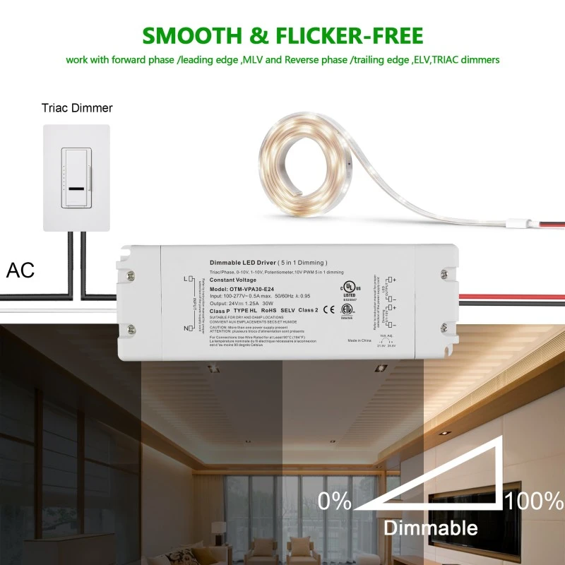 3. High Efficiency & Energy Saving: The STARWELL high quality 30W 24V Triac Dimming Led Driver has a conversion efficiency of up to 88% and low power consumption with a no-load power of ≤ 0.5W, which helps reduce long-term energy costs.