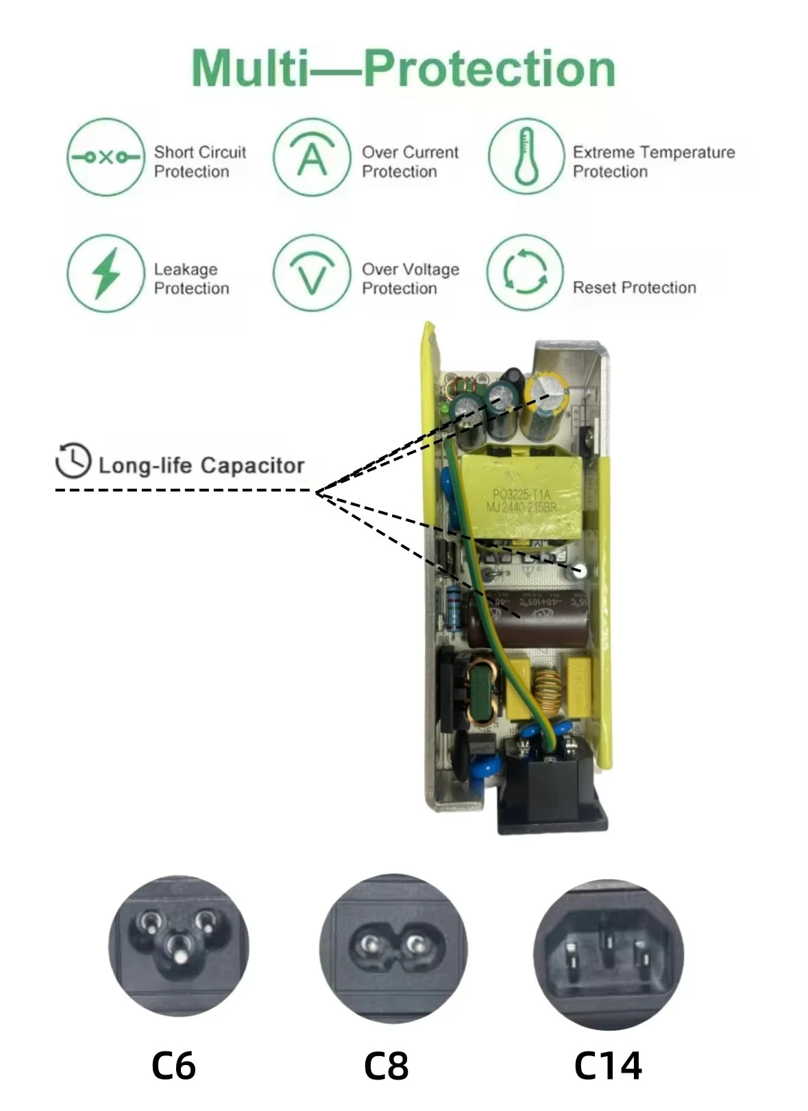 Comprehensive Safety Protections: Integrated safeguards including Over-Current Protection (OCP), Over-Voltage Protection (OVP), and Short-Circuit Protection (SCP) prevent damage to both the adapter and your valuable equipment.