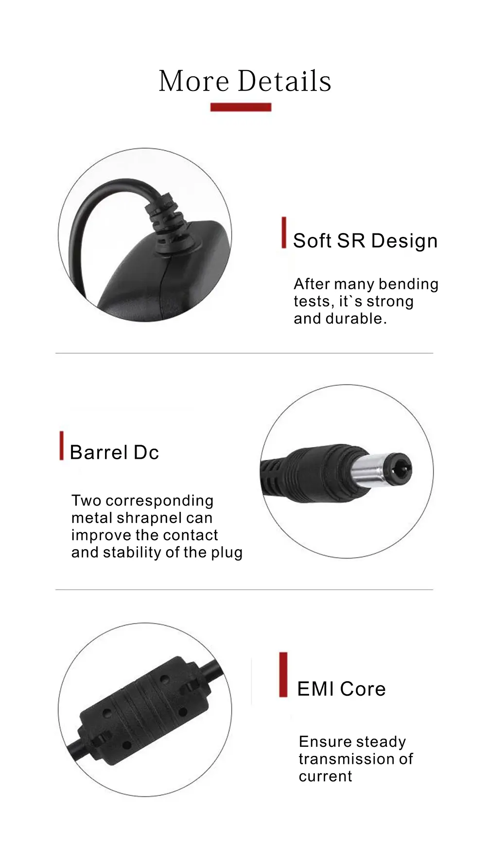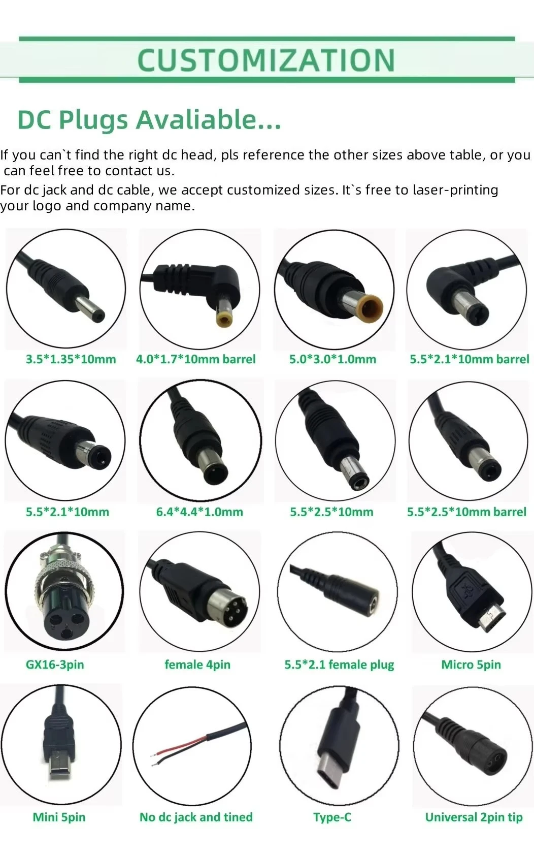 3. Connector Fit: Confirm the plug's size (e.g., 5.5mm x 2.1mm) and polarity (often center-positive) match your device's DC jack. A mismatch can cause damage.