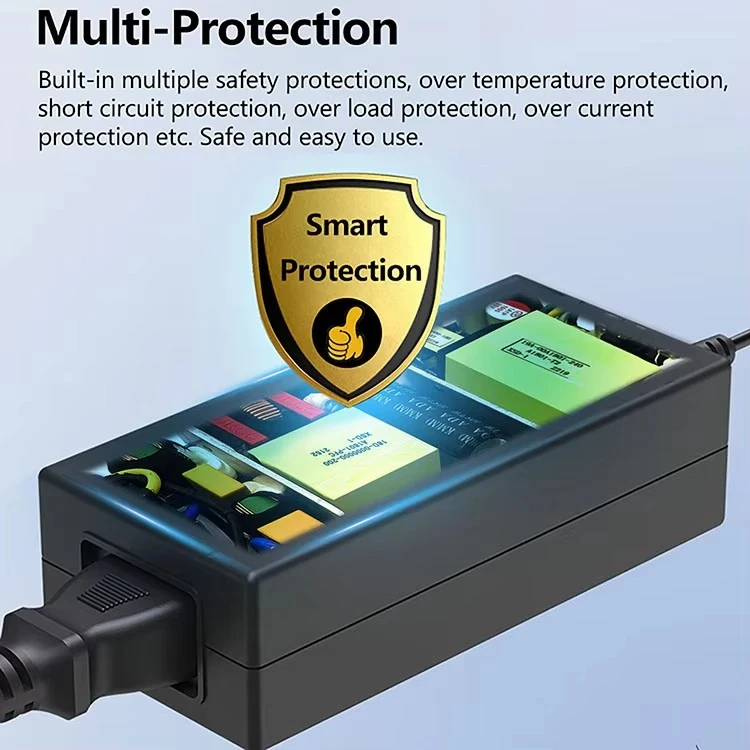 Starwell durable 24V 7.5A universal desktop power adapter features high conversion efficiency, minimal ripple and noise, and excellent voltage regulation under varying loads. The housing ensures efficient heat dissipation and durability. Comprehensive protection circuits protect against overvoltage, overcurrent, short circuit and overheating, increasing the safety of equipment and users.