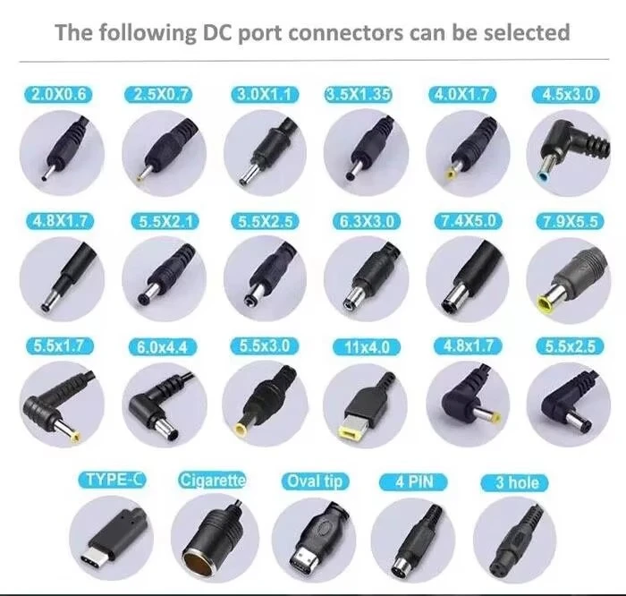 3. Connector Compatibility: Confirm that the adapter's DC output plug has the correct polarity (often center-positive) and physical size (e.g., 5.5mm x 2.1mm) to fit your device's power jack securely.