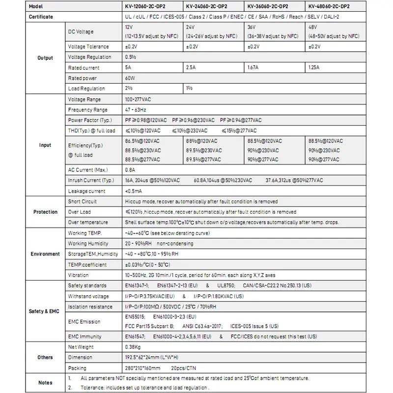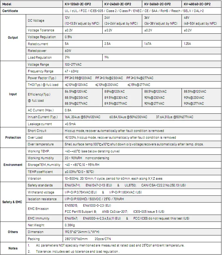 Adopting DALI digital dimming, it supports 0.1%-100% smooth flicker-free dimming and precise CCT adjustment from 2700K to 6500K, keeping brightness consistent during color temperature shifts. Built-in active PFC boosts efficiency up to 88%, with low no-load power consumption. It features soft start, overvoltage, overcurrent and short-circuit protection, ensuring safe operation.