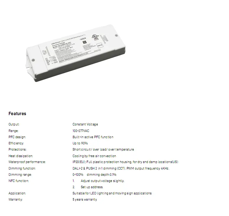 Housed in a compact, flame-retardant case, it suits indoor commercial lighting such as offices, hotels and shopping malls. With reliable performance and easy DALI bus integration, it enables intelligent lighting control and scene management, ideal for high-quality tunable white lighting projects.