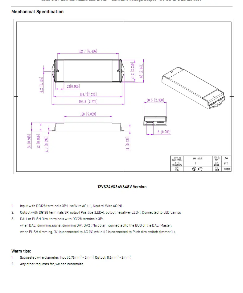 Starwell factory’s high quality 60W Constant Voltage DALI CCT Dimming LED Driver is a professional power solution for tunable white LED lighting, compliant with IEC 62386 DALI-2 DT8 protocol. It accepts 100-240VAC wide input, with standard 12V/24V DC constant voltage output, delivering stable power up to 60W for LED strips and panels.