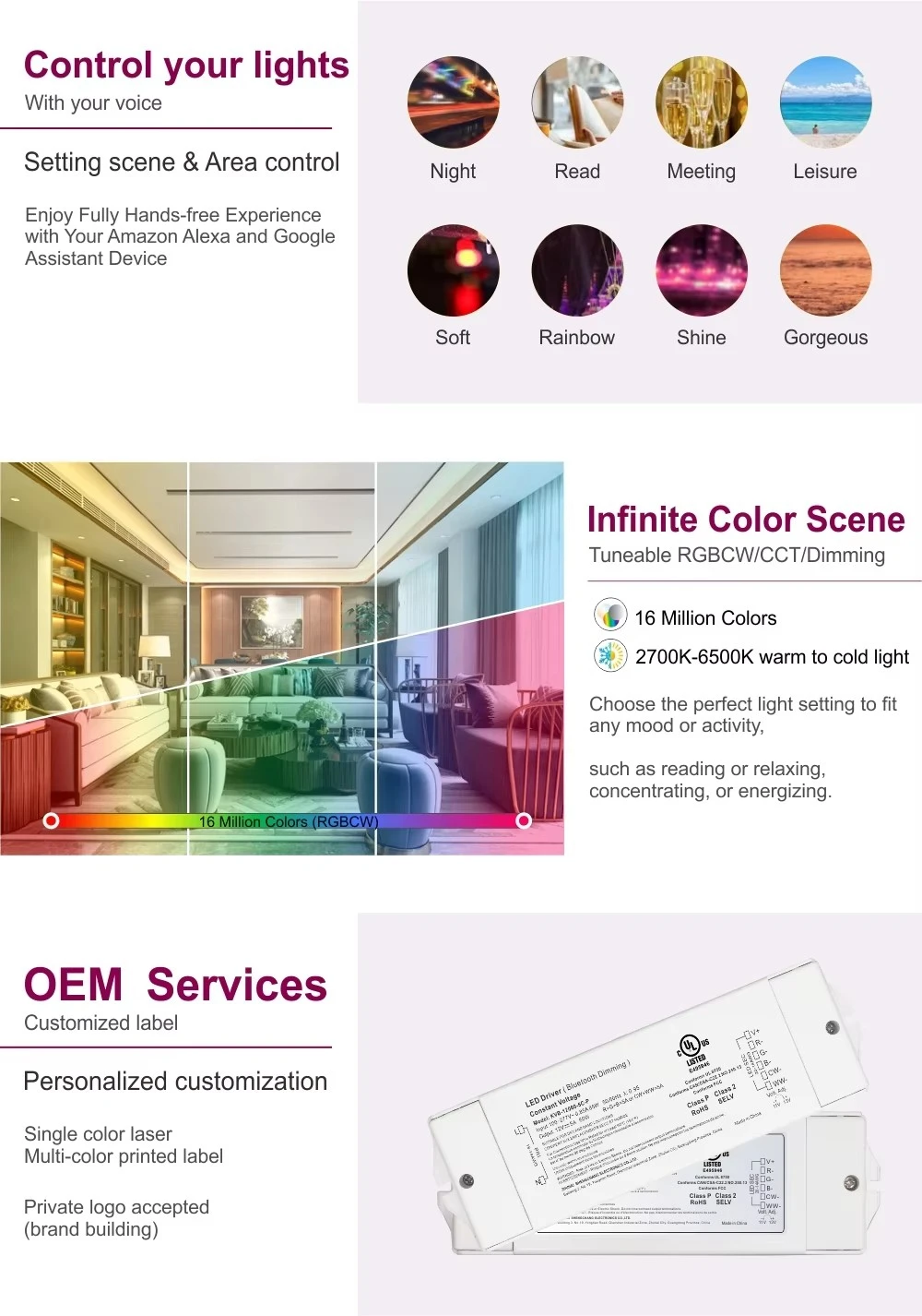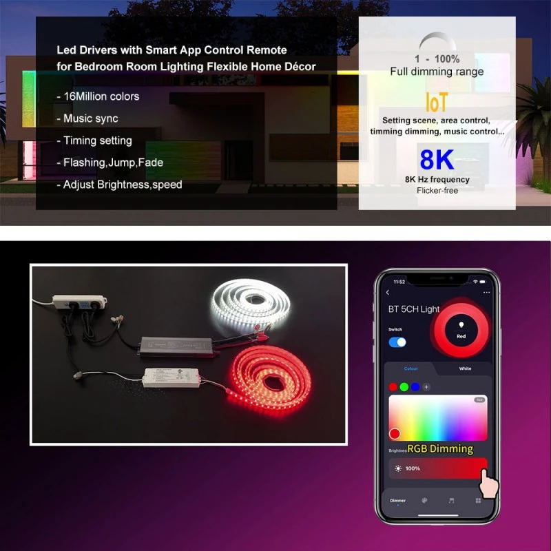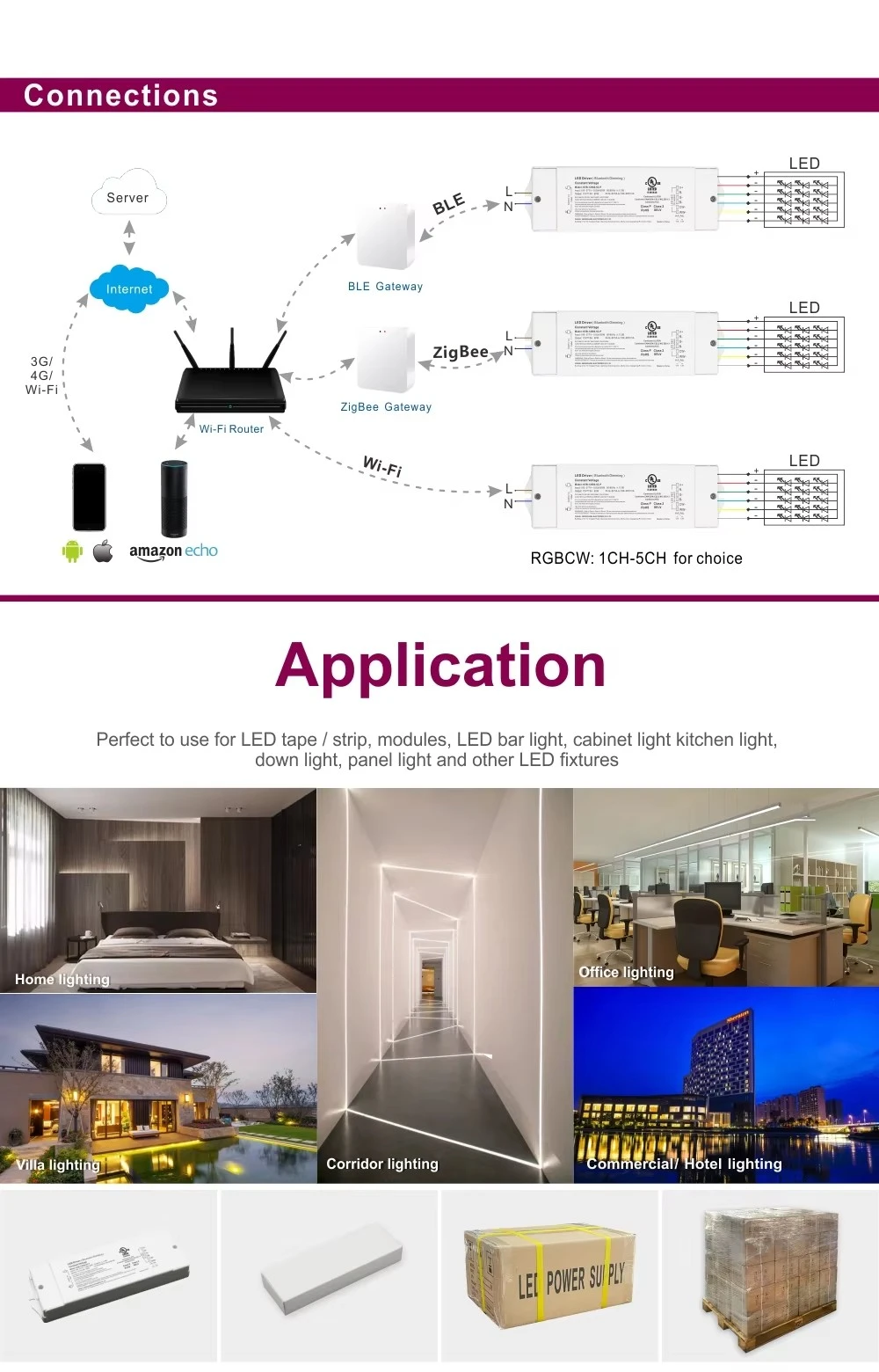Smart Dimming at Your Fingertips Featuring an integrated ZigBee wireless module with TUYA technology, this driver offers seamless smart control. Adjust brightness via mobile app or voice commands through Google Home and Amazon Echo. The high-frequency 8K Hz PWM output ensures completely flicker-free dimming, while the 1-100% dimming range with 1% depth allows for smooth transitions and perfect ambiance creation.