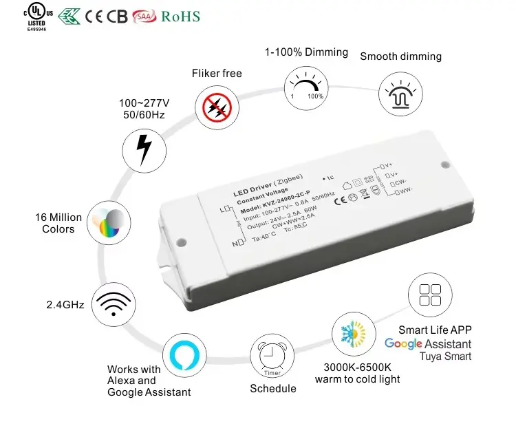 Experience the perfect blend of smart connectivity, precise control, and reliable performance with our 60W ZigBee TUYA dimming driver.