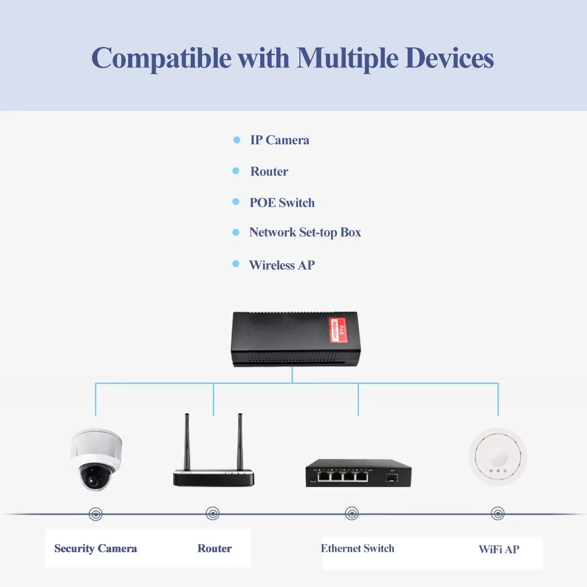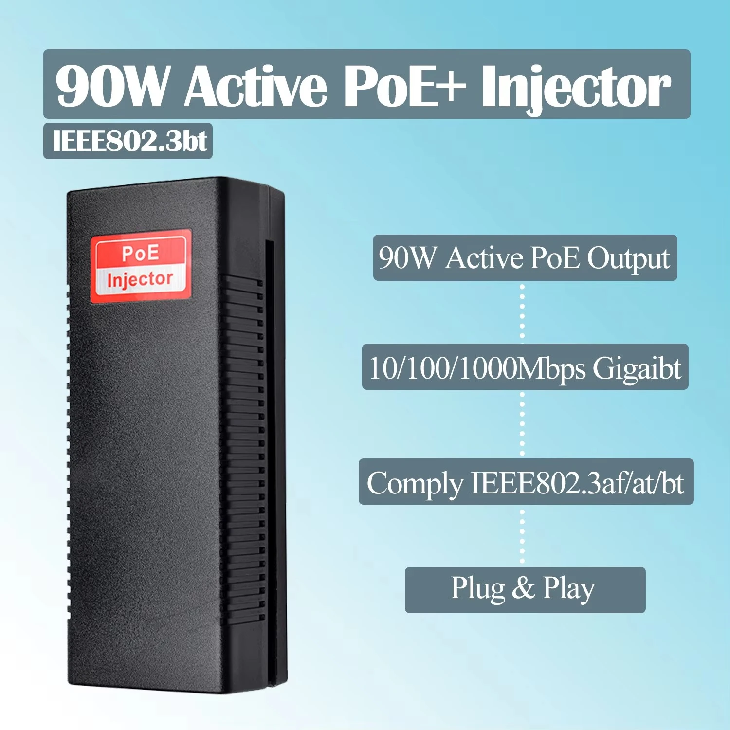 The STARWELL OEM PoE Injector Gigabit 48V 90W PoE Injector for IP Cameras is a high-performance Gigabit Power over Ethernet (PoE) solution designed for small to medium network environments. It features: