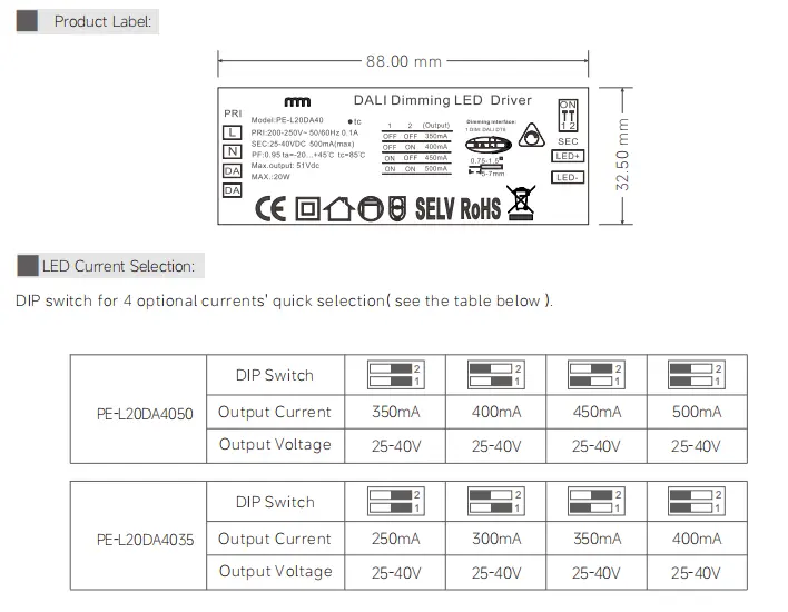 Precision Power & Flexible Configuration This driver accepts a wide AC input range of 200-250V, ensuring stable operation in various grid conditions. It delivers a constant current output, adjustable from 25V to 40V, with six selectable current options: 250mA, 300mA, 350mA, 400mA, 450mA, and 500mA. This exceptional flexibility allows you to perfectly match and power a broad spectrum of LED modules, simplifying inventory and design choices.