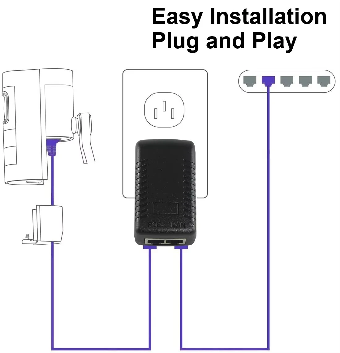 · Plug and Play: No configuration required. Simply connect the LAN cable from your switch and the PoE cable to your device.