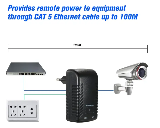 Engineered to the 48V IEEE 802.3af standard, this Non-Standard Wall-mount Ethernet Adapter delivers a stable 15W power output, fully supporting most POE-powered IP cameras, which typically require 15-25W (excluding high-power PTZ models). It also works reliably with IP phones and other devices compliant with 802.3af or 802.3at POE standards, offering wide compatibility beyond surveillance setups. Built for stable long-term operation, the Wall Plug POE Injector merges power and data transmission over a single Ethernet cable, cutting installation time and material costs for residential, commercial, and security networking projects.