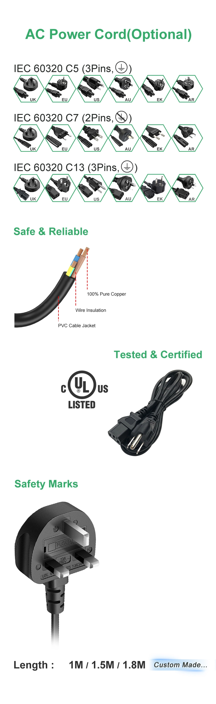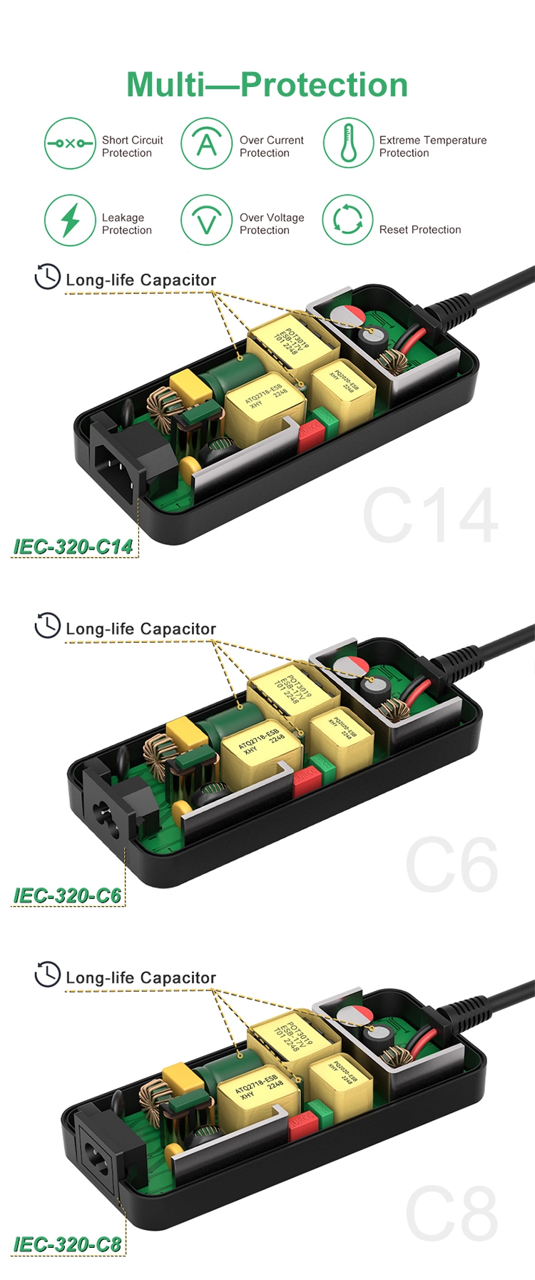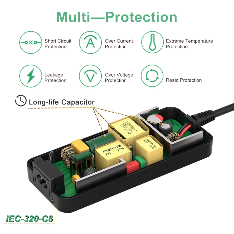 * Universal plugs: US/EU/AU/UK/JP and more