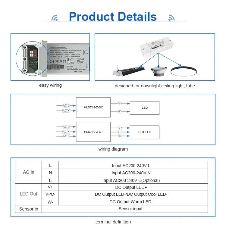 Smart Tunable White Control: This 350mA LED driver allows you to wirelessly adjust brightness and color temperature (CCT) from warm to cool white via the Tuya Smart app.