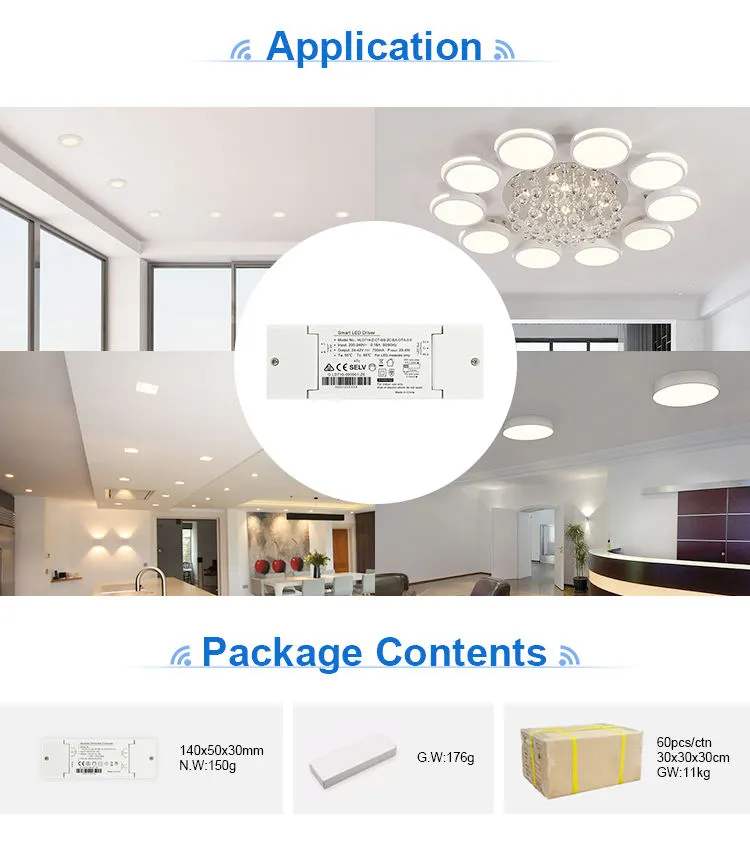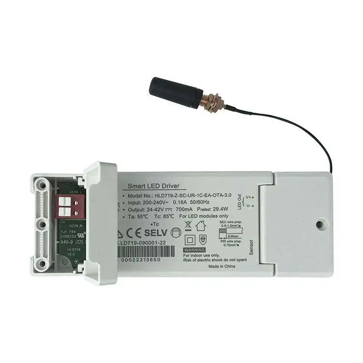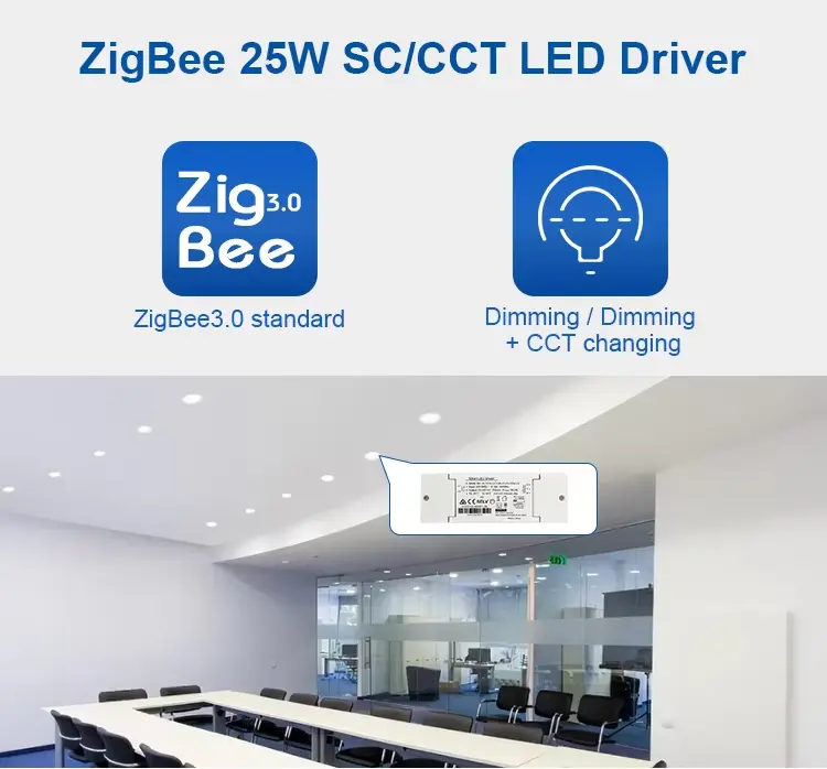The driver operates within a Zigbee mesh network and connects to a Zigbee gateway to enable smart lighting functions such as scheduling, scene control, group control, and automation. This type of LED driver is commonly used in smart home lighting systems, commercial lighting installations, and intelligent building control environments.